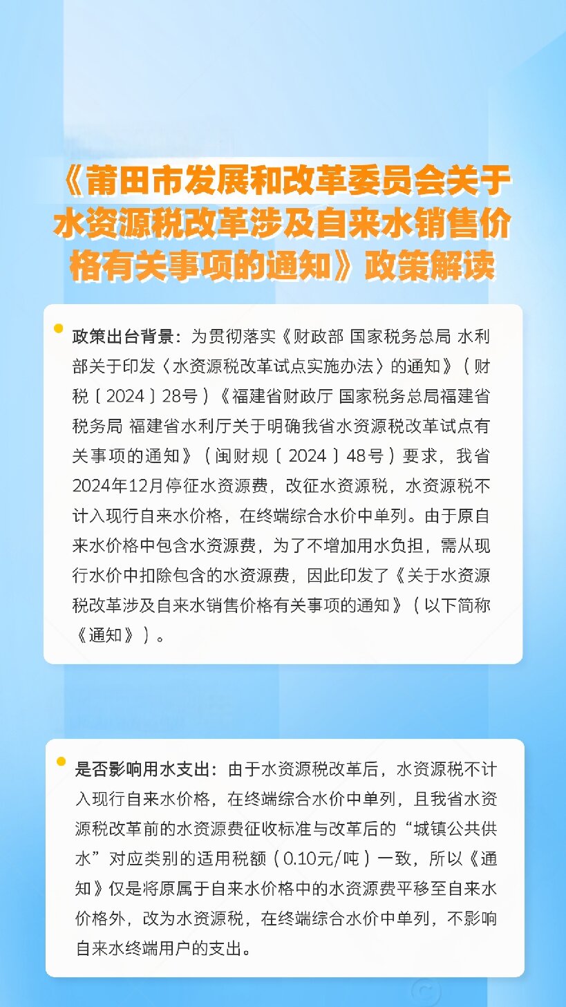 一图读懂《莆田市发展和改革委员会关于水资源税改革涉及自来水销售价格有关事项的通知》政策解读
