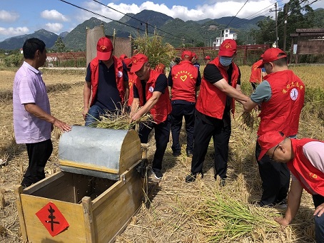 党员志愿者们深入认领田中,干劲十足,撸起袖子、拿起镰刀,脚踩打谷机、体验农耕劳作,从割稻谷到打稻谷,整个过程齐心协力、有条不紊,真正体会到“粒粒皆辛苦”的内涵,进一步树立“学农爱农”的情怀,不断提升“爱粮节粮”的使命感与责任感。